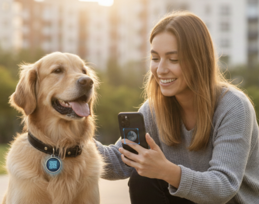 Si tu mascota se pierde, cualquiera puede escanear el QR y enviarte la ubicación exacta en segundos.